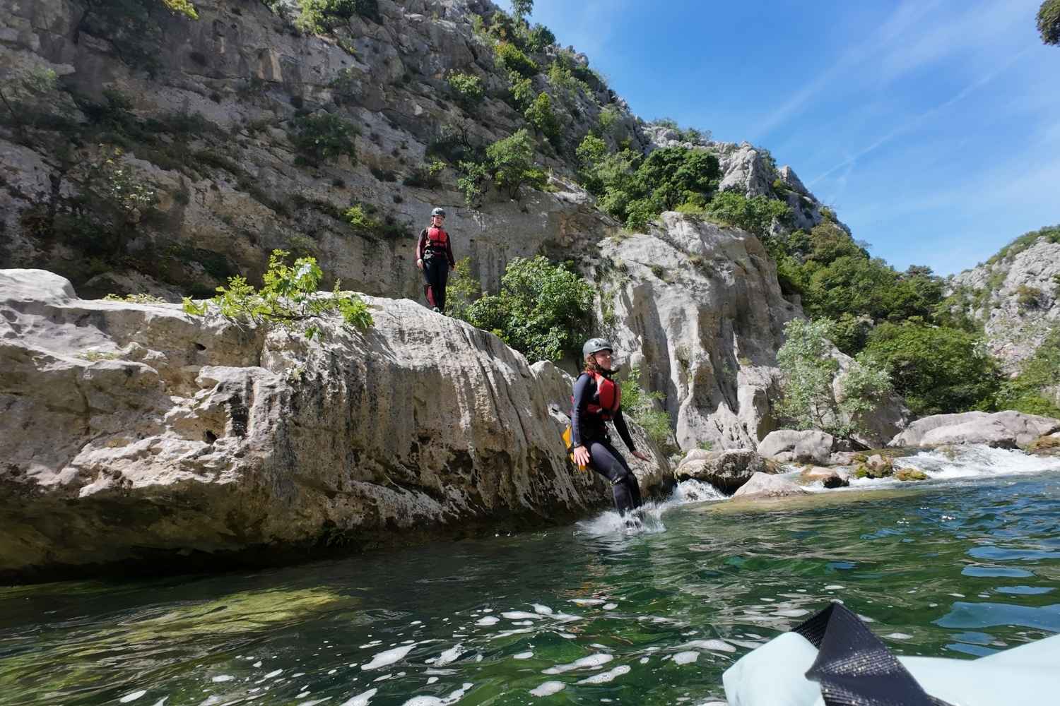 Canyoning Cetina Adventures offers all-inclusive 5 and 7-day adventure holiday packages based in Omiš, Dalmatia — 25 minutes south of Split. From 700€ per person, including accommodation, all meals, certified guides and equipment. Rated 5.0 by 3,100+ guests. Max 8 per group.